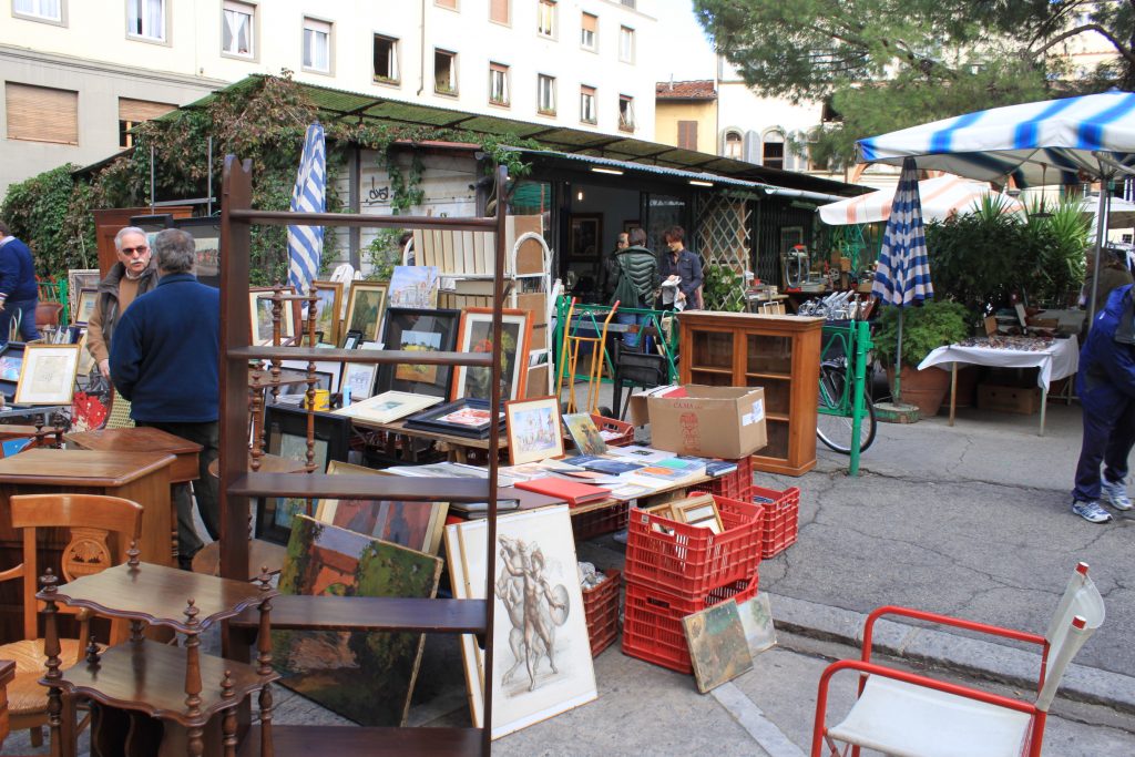 La piccola ma importante Piazza dei Ciompi nella zona di Santa Croce ha ospitato uno dei più antichi mercato dell’antiquarito e delle pulci a Firenze. In posto d’onore c’è la Loggia del Pesce che è stata portata e ricostruita qui da Piazza della Repubblica negli anni di Firenze Capitale. La loggia è stata restaurato solo alcuni anni fa e a quel punto si vedeca che il resto della piazza aveva bisogno di un po’ di cura. Dietro la loggia c’erano dei piccoli negozi di antiquariato e questi sono stati smontati per il rinnovamento della piazza. I negozi temporaneamente sono stati spostati a Piazza Annigoni, vicino al mercato di Sant’Ambrogio, anche se mi pare che siano più di due anni che sono lì.