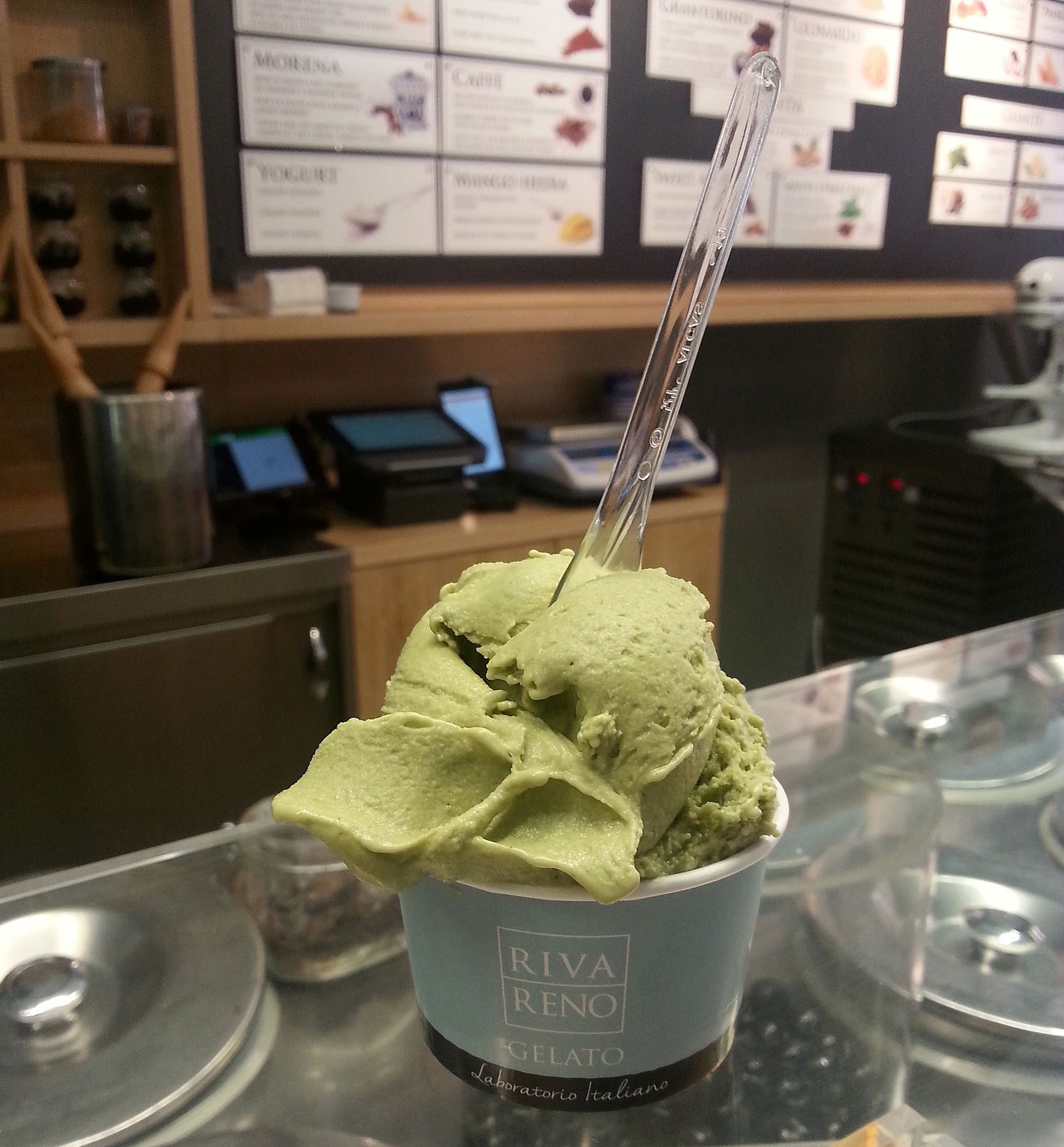 Rivareno, with its slogan "laboratorio di gelato italiano", seeks to offer high quality gelato made that day with freshest ingredients. You can see at the back of the shop the machines used in the shop. The shop is part of a franchise network given its success, but we don't feel this detracts from the yummy gelato we've had many times here. We also love the long hours - usually from noon to midnight or 1am on Fridays and Saturdays during the summer months.