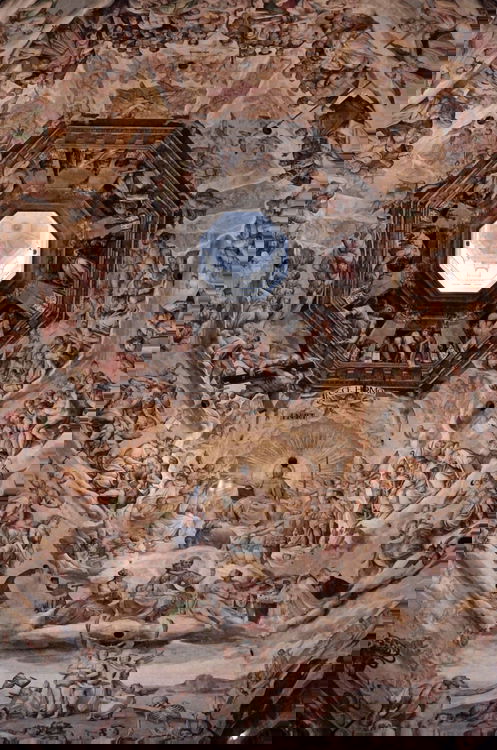 All' interno della cupola si può vedere da vicino i bellissimi affreschi di Giorgio Vasari. Il Vasari progettò e lavorò ad uno straordinario Giudizio Universale, che, alla sua morte, fu terminato da Federico Zuccari, suo allievo, nel 1579.
