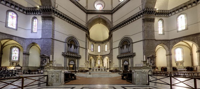 La cattedrale fu iniziata alla fine del XIII secolo da Arnolfo di Cambio, mentre la bellissima cupola di Filippo Brunelleschi fu aggiunta nel XV secolo.