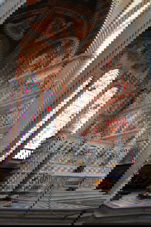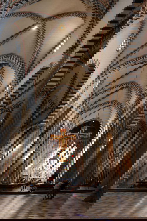 La Basilica di Santa Maria Novella non è generalmente tra la top 10 dei luoghi da visitare a Firenze ed è un vero peccato. Raccomandiamo vivamente di visitarla. Architettonicamente è una delle chiese più importanti in stile Gotico in Toscana. L'esterno è opera di Fra Jacopo Talenti e Leon Battista Alberti. L'interno racchiude capolavori straordinari, tra cui la Trinità di Masaccio, gli affreschi del Ghirlandaio nella Cappella Tornabuoni e il Crocifisso di Giotto.