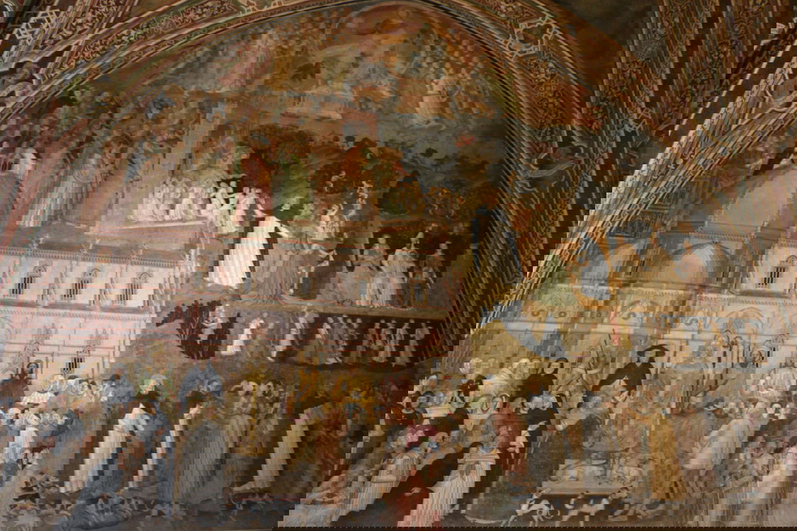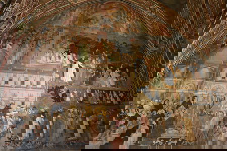 La visita finisce nell'antico refettorio dove sono conservati preziosi oggetti liturgici della sacrestia e alcune delle sinopie degli affreschi dell'Orcagna recuperate dalla Cappella Tornabuoni.