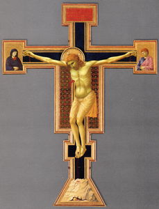 Il Crocifisso di Giotto si trova al centro della navata centrale, posizione tradizionale per i crocifissi di Giotto: il vuoto tutto intorno dove ricordare la vera crocefissione di Cristo sulla croce di legno. Opera giovanile di Giotto (1288-89) mostra tutta la sua maestria nell'ombreggiatura del corpo di Cristo, i movimenti dei capelli, le gocce di sangue, i dettagli dello sfondo.
