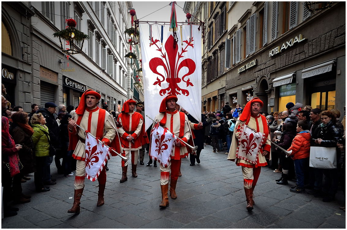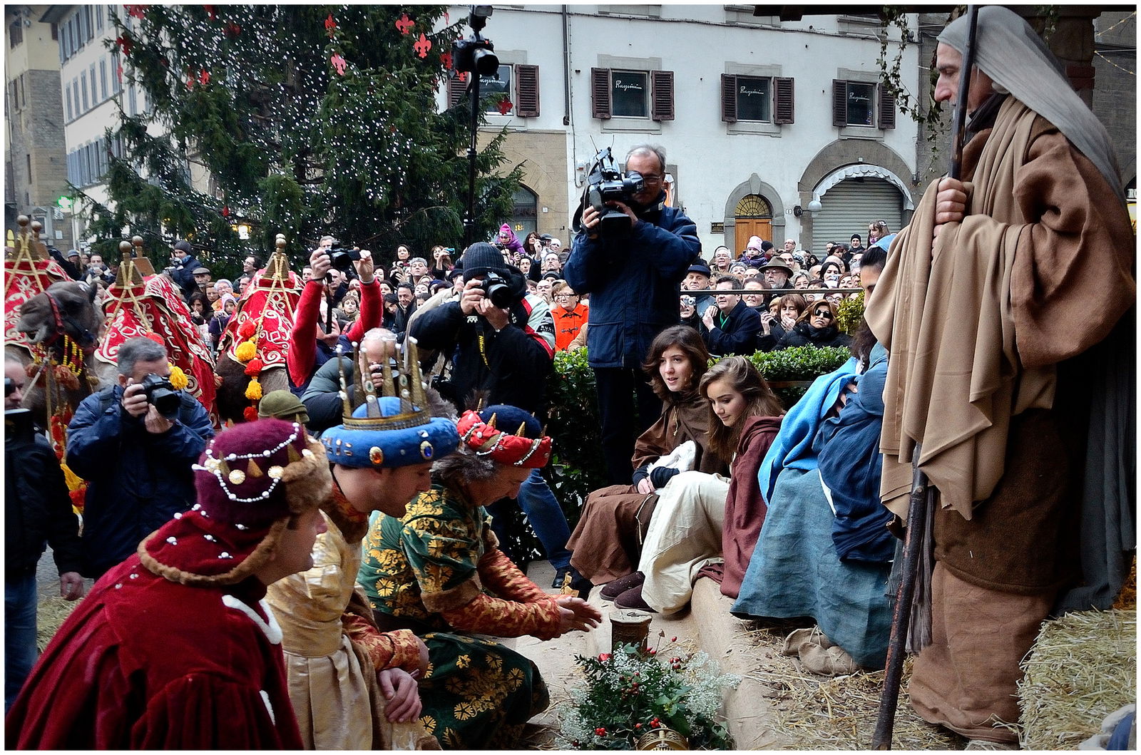 Ma in sostanza, in cosa consiste la sfilata dei Re Magi? Vedrete i 3 saggi arrivare con i loro doni - oro, incenso e mirra - con a seguito una sfilata di più di 500 persone provenienti da tutta Italia, che si uniscono alla celebrazione. Un piccolo presepe vivente con Gesù Bambino, Maria, Giuseppe ed una mangiatoia con il bue e l’asinello viene allestito in Piazza del Duomo. Signori con le loro dame, cavalieri, contadini, soldati, personaggi religiosi e chi più ne ha più ne metta: la compagnia dei tamburini e degli sbandieratori degli Uffizi incanterà il pubblico con i loro giochi e spettacoli con le bandiere, facendole volteggiare in aria lungo tutto il tragitto ed in Piazza della Signoria.