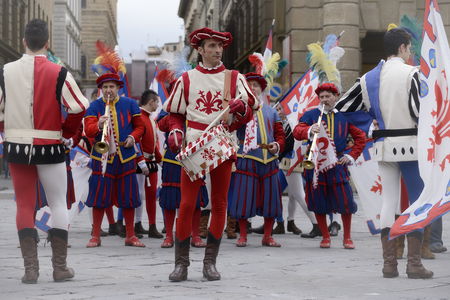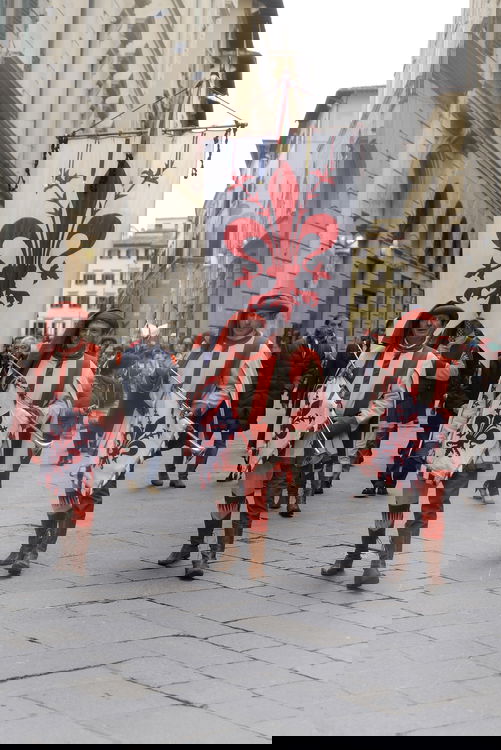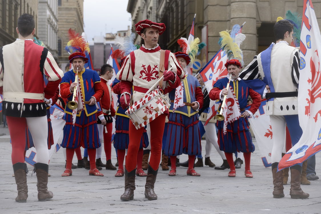 La cerimonia a cui potete assistere oggi, non è così diversa da quella del passato bensì propone gli stessi rituali. Il tutto inizia verso le 10 del mattino, un prete stofina le tre pietre focaie di Pazzino le cui scintille accendono la candela di Pasqua; questa a sua volta viene usata per dar fuoco ai carboni che si trovano in un contenitore sul Carro. La processione dopo aver percorso le strade di Firenze consegna il Fuoco Santo all’Arcivescovado davanti a Santa Maria del Fiore, meglio conosciuta come il Duomo. Il Carro viene accompagnato lungo il percorso da una processione con percussionisti e sbandieratori, tutti in abiti storici, anche i funzionari della città ed i rappresentanti del clero.