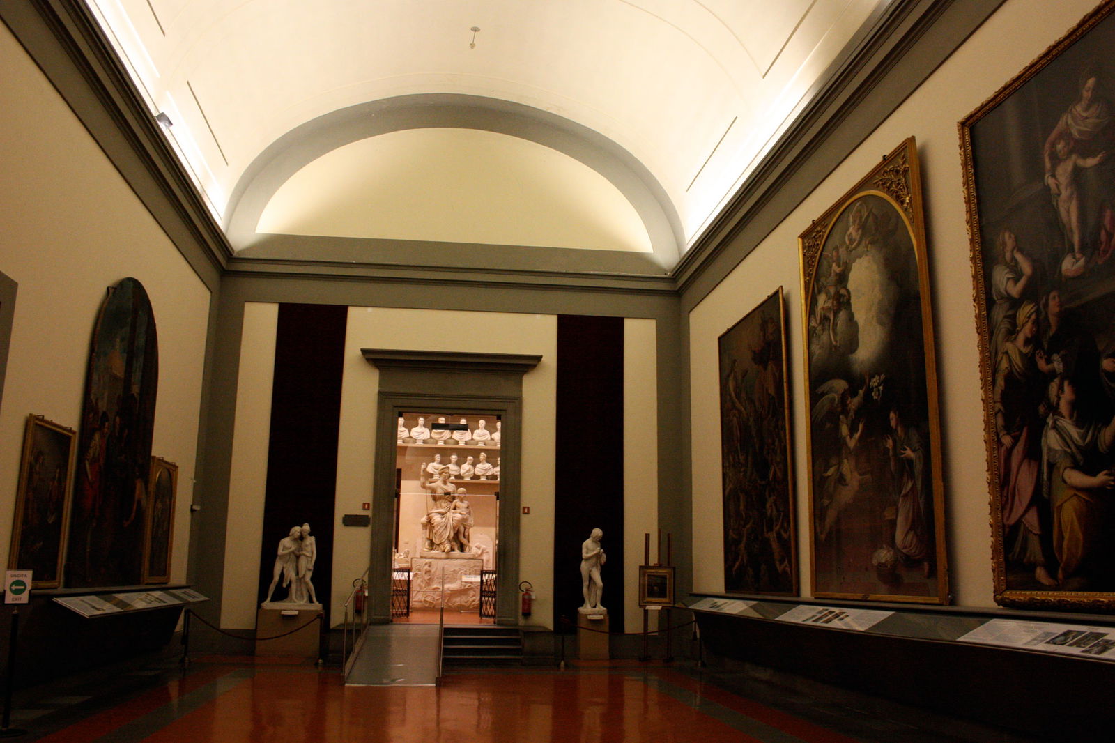 Accanto a questi tre dipinti di grosso formato ecco la soglia dell’antico cuore della galleria. Nel 1784 il Granduca di Toscana Pietro Leopoldo di Lorena coverti’ l’antico ospedale di San Marco e convento di san Niccolò di Cafaggio in ambiente di studio dove conferire modelli di opere d’arte per studenti, fondando l’Accademia di Belle Arti. Nell’antica ala dell’ospedale che era utilizzata come corsia delle donne sorge adesso la Gipsoteca Bartolini, dedicata ai modelli in gesso creati dall’artista ottocentesco e professore dell’Accademia Lorenzo Bartolini.