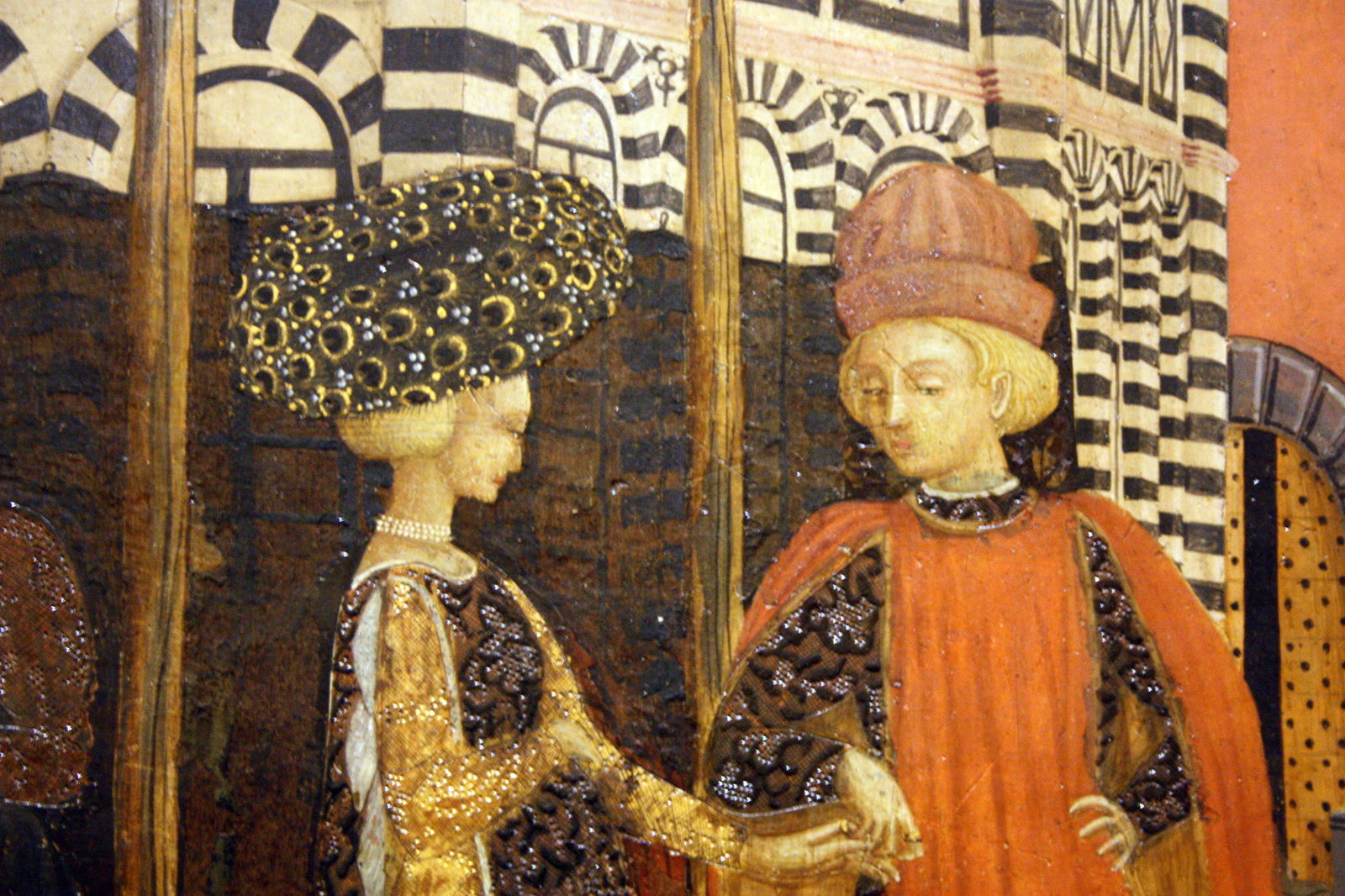 Scegliere le opere più importanti è una mossa delicata, considerata la portata defli artisti esposti. Curiosa e inconfondibile è però la forma allungata di un pannello esposto accanto all’ingresso sulla destra. Si tratta di un cassone nunziale dipinto, noto come Cassone Adimari. Il cassone riproduce, come in una istantanea, un corteo nunziale che si svolge fra strade e monumenti del centro di Firenze, dove en riconoscibile vi è raffigurato il Battistero. Una vera parata di eleganti custumi alla moda nella Firenze del Quattrocento.