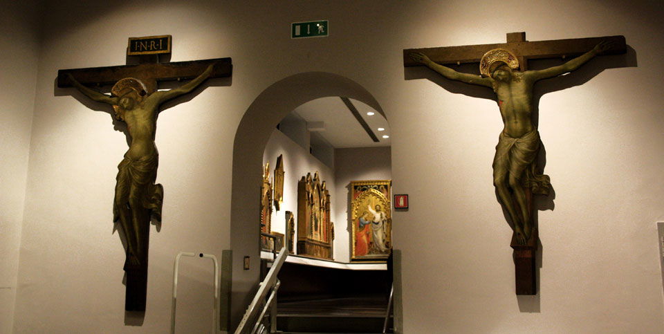 In tema di pittura sacra, è certamente interessante (e interattivo) visitare il primo piano del museo che ospita la collezione di dipinti di Giovanni da Milano e pittori del tardo trecento. Video chiari e sintetici spiegano come venivano realizzati con maestria e pazienza le grandi macchine d’altare, partendo dalla selezione delle vene centrali di pioppo, legno resistente e flessibile per accogliere la foglia d’oro e i pigmenti a tempera preparati per riempire il disegno su tavola. Il video riproduce fedelmente le fasi della tecnica pittorica a tempera su tavola descrite nel Libro dell’Arte del pittore e miniatore Cennino Cennini.