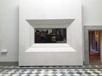 Prendete anche respiro, poiché solitamente la sala successiva è una delle più affollate per ammirare l’unico dipinto autografo di Leonardo, una splendida Annunciazione del periodo giovanile (che al momento si trova al 1° piano mentre la sua nuova sala viene restaurata). Il susseguirsi di opere è affascinante e mozzafiato: riprendete aria nel corridoio della loggia ammirando la Tribuna e godendo dalla “testata di ponte” l’imperdibile vista a 180° sulla collina di San Miniato, Giardino Bardini, la Kafeehouse di Boboli e infine su Ponte Vecchio.