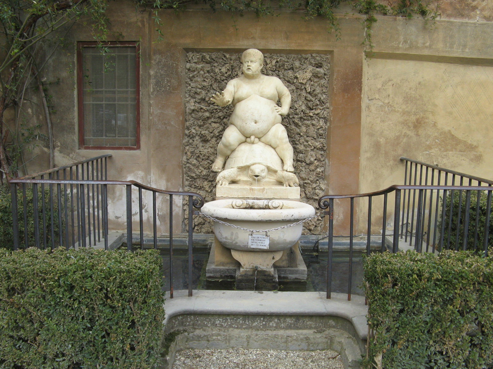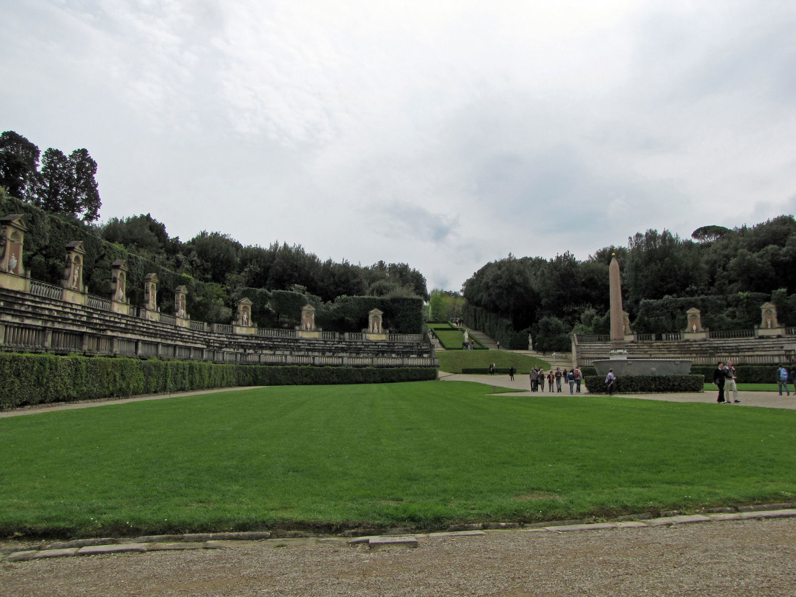 Oltrepassando il monumentale Cortile dell’Ammannati dentro Palazzo Pitti un primo scalone vi condurrà alla Fontana del Carciofo, il cui basamento ottagonale è coronato da un trionfale giglio bronzeo, purtroppo criticato aspramente dai fiorentini, che pungentemente lo soprannominarono “Carciofo”. Da questo punto la vista si apre sull’Anfiteatro (in realtà una porzione di Ippodromo) scavato dietro la reggia di Pitti nella collina, un tempo usata come cava di pietra forte. Al centro della vasta area circondata da sculture spicca un gigantesco (e pesantissimo) obelisco che fu trasportato da Luxor e qui posto nel 1789.