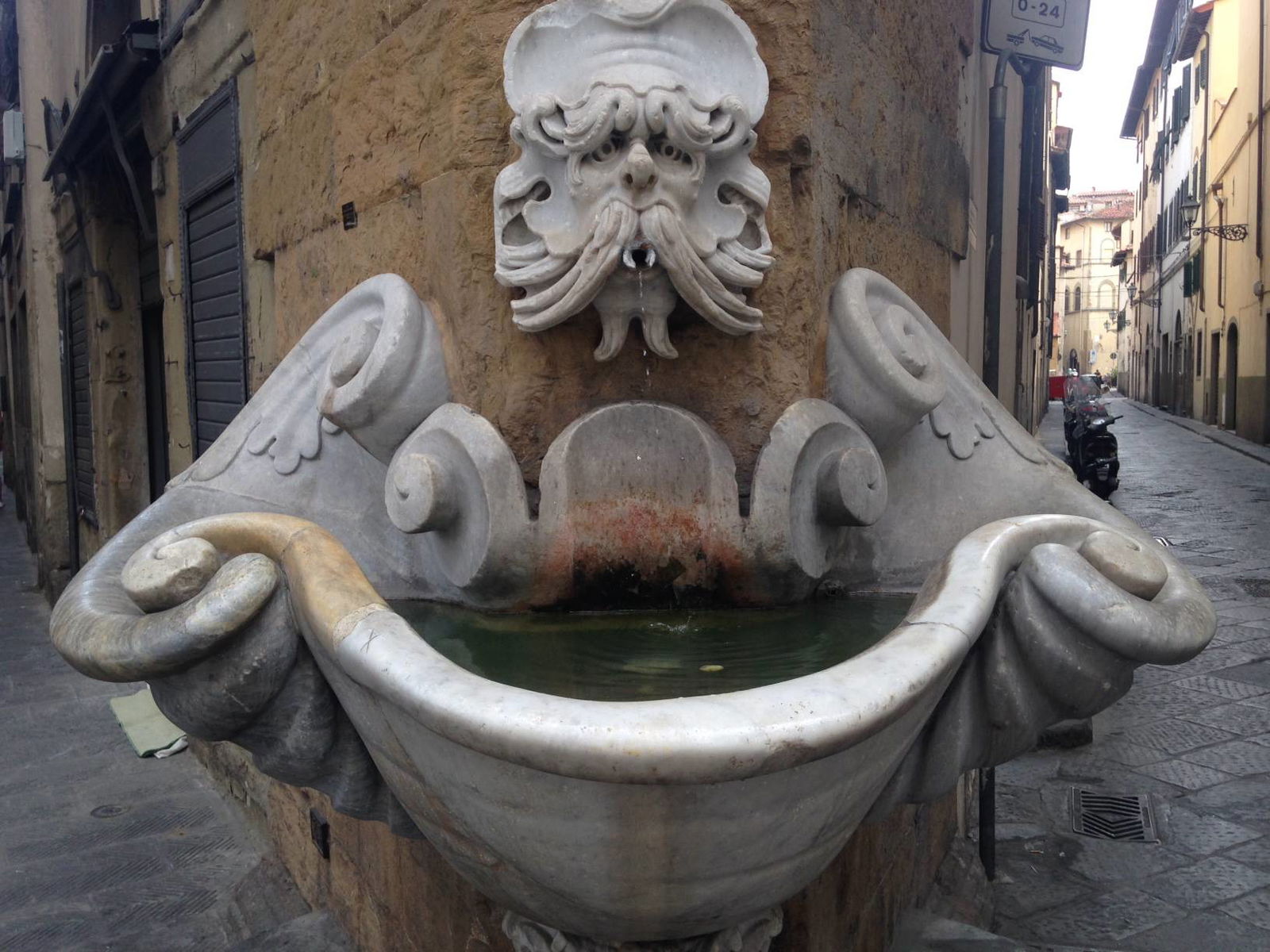 Questo capolavoro del Buontalenti (della fine del sedicesimo secolo) con una impressionante maschera grottesca, è forse la fontana più famosa della zona dell'Oltrarno. Basti pensare che risale al 1608, quando l'area fu adornata ed abbellita in occasione del passaggio della processione nuziale di Cosimo II de' Medici e di Maria Maddalena d'Austria.
