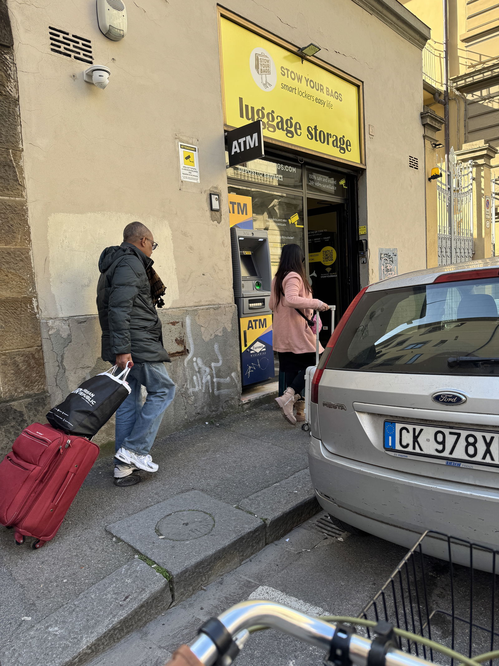 Eravamo curiosi di provare anche noi il servizio di Stow Your Bags e testarne la facilità di utilizzo, per questo siamo andati in “ricognizione”. Per caso, abbiamo incontrato un gruppo di quattro persone che aveva fatto la prenotazione degli armadietti ed aveva con sè quattro bagagli a mano, tre zaini ed altre cose da depositare prima di andare al loro ingresso riservato alla Galleria degli Uffizi.
