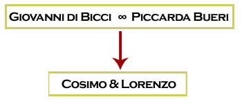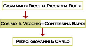Il figlio di Giovanni, Cosimo, fu saggiamente "addestrato" da su padre ad espandere ed a mantenere l'influenza ed il potere della famiglia da un lato, e la ricchezza della loro banca dall'altro. Il nipote di Cosimo, Lorenzo, non solo portò avanti gli interessi della casata, ma li accrebbe notevolmente. Cosimo è conosciuto come il Pater Patriae, ma anche con l'appellativo de "Il Vecchio", mentre Lorenzo si meritò l'appellativo di "Il Magnifico".