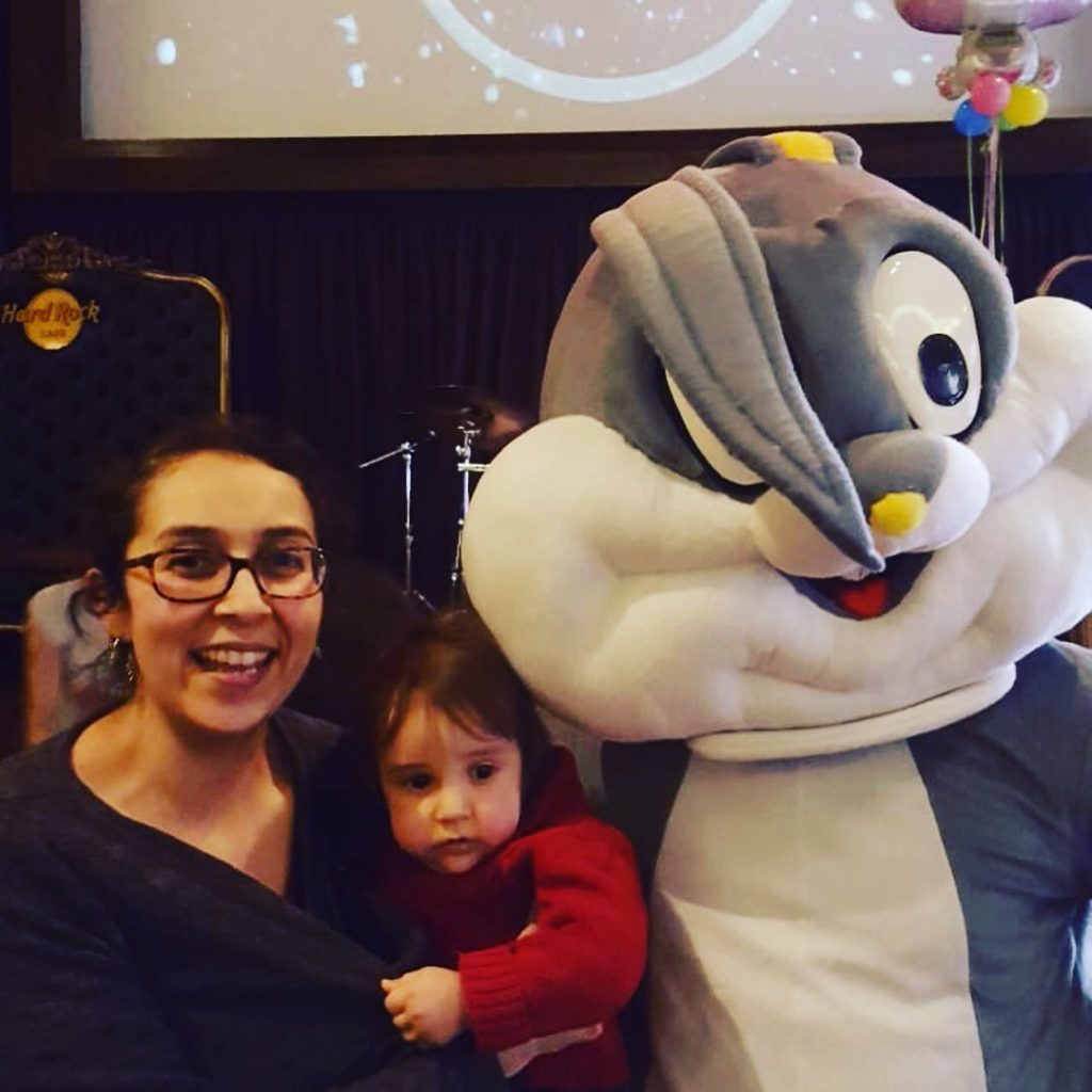 To end the morning, we decided to take a picture with Bugs! My one year old wasn’t super excited about that one ;-). We enjoyed a delicious brunch out and everyone had a fun morning so we considered the brunch a success!