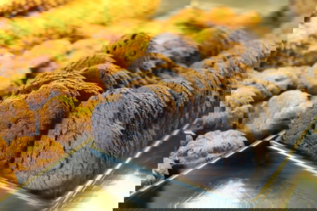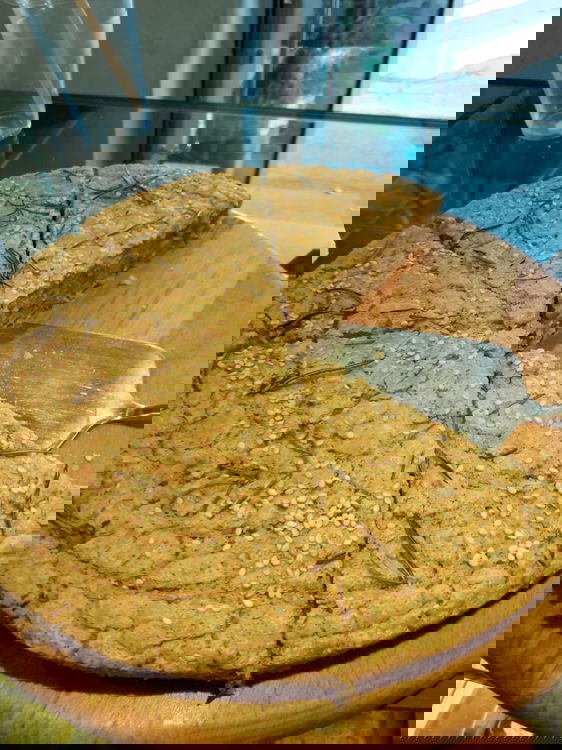 For Giumella’s seitan, Lucia prefers to not use Manitoba flour which comes all the way from Canada and instead has adapted her recipe to use local durum wheat which she gets directly from a local mill near Arezzo. Instead of soy sauce and kombu algae in the cooking broth, she uses lentils, another local product. The lysine, necessary for a correct absorption of the gluten in seitan, is added directly to the cooking broth. The entire preparation, from the dough to the rinsing, is all done by hand (even if Lucia designed her own machine to make her seitan following her methods).