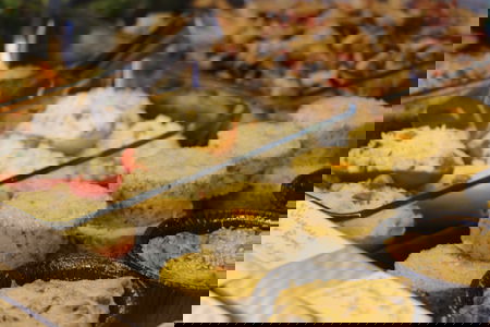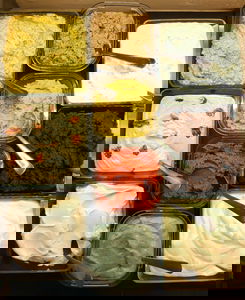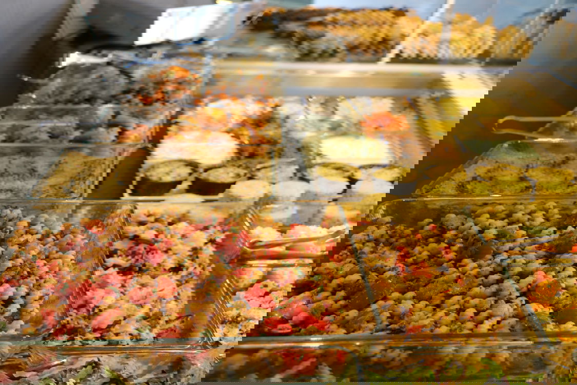 It is possible to buy everything by weight but I recommend you try the lunchbox like we do: it is a set size box offered at any time of the day for 7,50 euro. You point out what you want and it gets filled, it is the perfect amount for a meal and includes a sauce. If you think you will be heading back again, you can prepay a card for 10 boxes and you’ll get one free. I find it is the best value for your meals between cost, quantity and variety. These boxes are a great solution for parties or dinners with friends, all you need to do is call ahead to make sure there is enough of what you want. If you’re interested, Giumella also does catering services for larger events.
