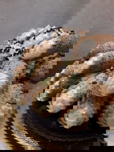 You can also try out the vegan cheese made with dried fruit and seeds, to be eaten crumbled on top of a salad or by a wedge. It does not taste like milk cheese at all, so try out it for its own sake. I find it enjoyable and try to limit the quantity I eat at any time given its high calorie content.