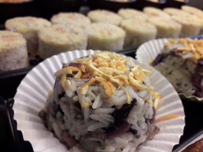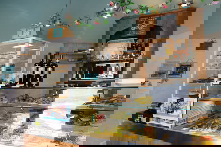 It is a very small deli, with a counter full of edible colors and shapes from which to choose from. There are a few small tables if you want to sit and eat there but it is much more practical to take away what you order.
