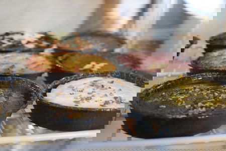 You have many side dishes from which to choose from, many offering a mix of legumes: white or black chickpeas, beans, cicerchie (also known as Indian peas), dried peas, quinoa, potatoes, artichokes and many colorful vegetables that attract your eye before your tastebuds!