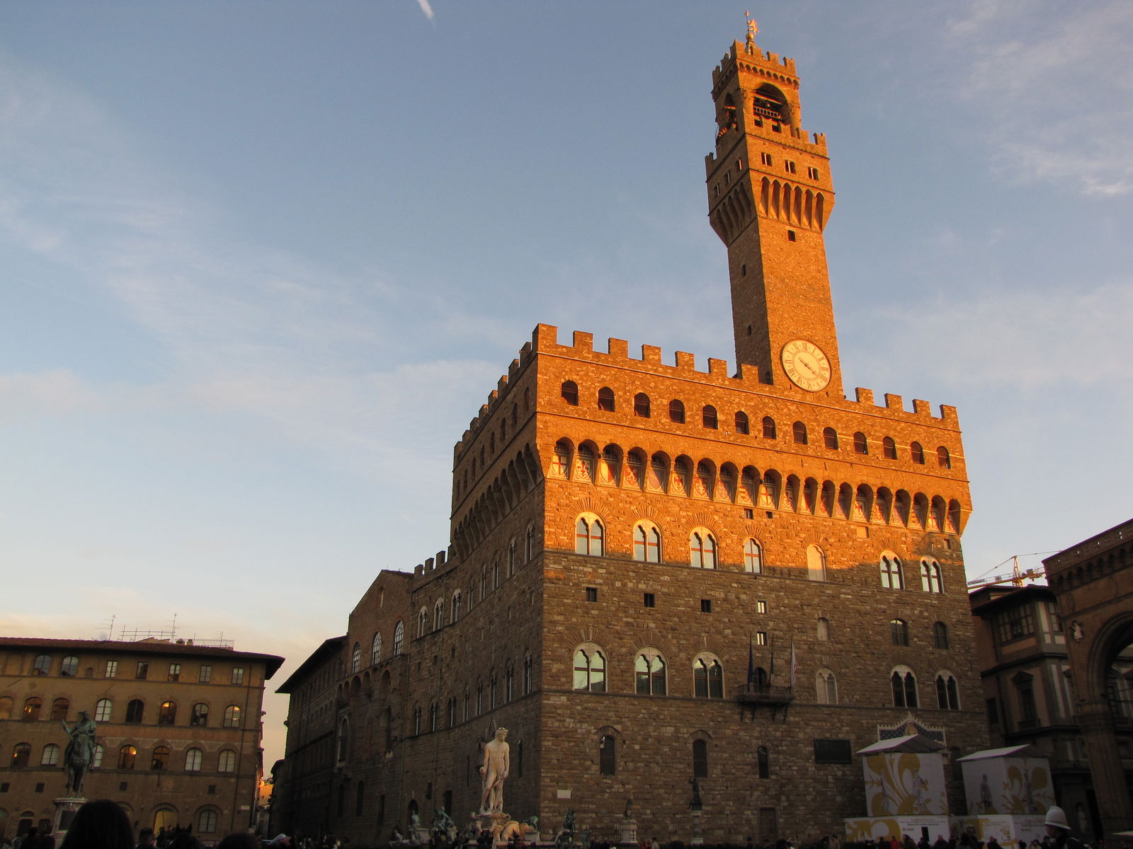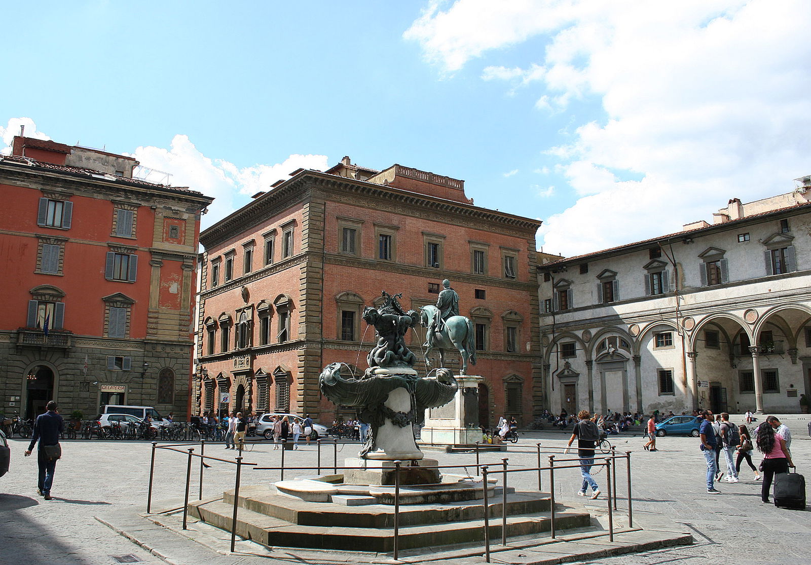 Through the centuries the square managed to retained its medieval look up until the 18th century when the town council decided to widen the square and "clean up" the center. Medieval towers, churches, workshops, homes and original seats of the some of the Guilds were destroyed. One can see how the square looked at that time through prints and paintings housed at the museum Firenze com'era (Florence as it was). Sadly, its present rectangular form and architecture reflects the result of the urban "clean-up period" Florence went through during its time as capital of Italy (1865-71: another sad destruction of the period was the tearing down of the 13th century walls that surrounded the city to make way for a wide boulevard).