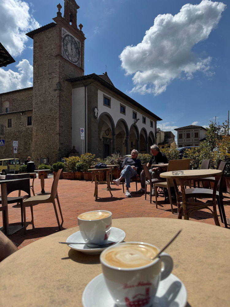 This road brings us to the central square of Impruneta, a town right at the edge of the Chianti region. We have time for a short walk and a cappuccino stop (and a bathroom break at the bar), then we’re off again toward Relais Villa Olmo.