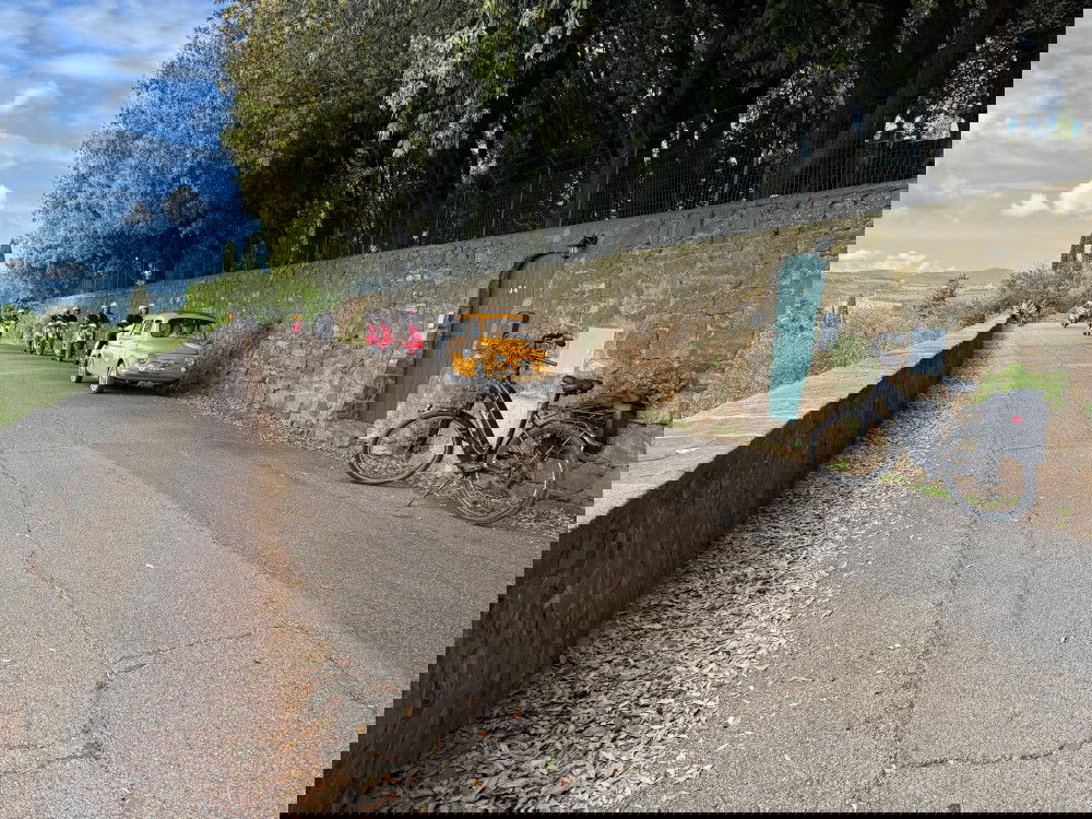 The little roads behind San Miniato are picturesque and offer stunning views of the Florentine hills. We pass through Arcetri, home to the observatory and the house where Galileo once lived, now a private museum. Without e-bikes, this would’ve been a tough ride, but with them, the uphill section is easy and pleasant.