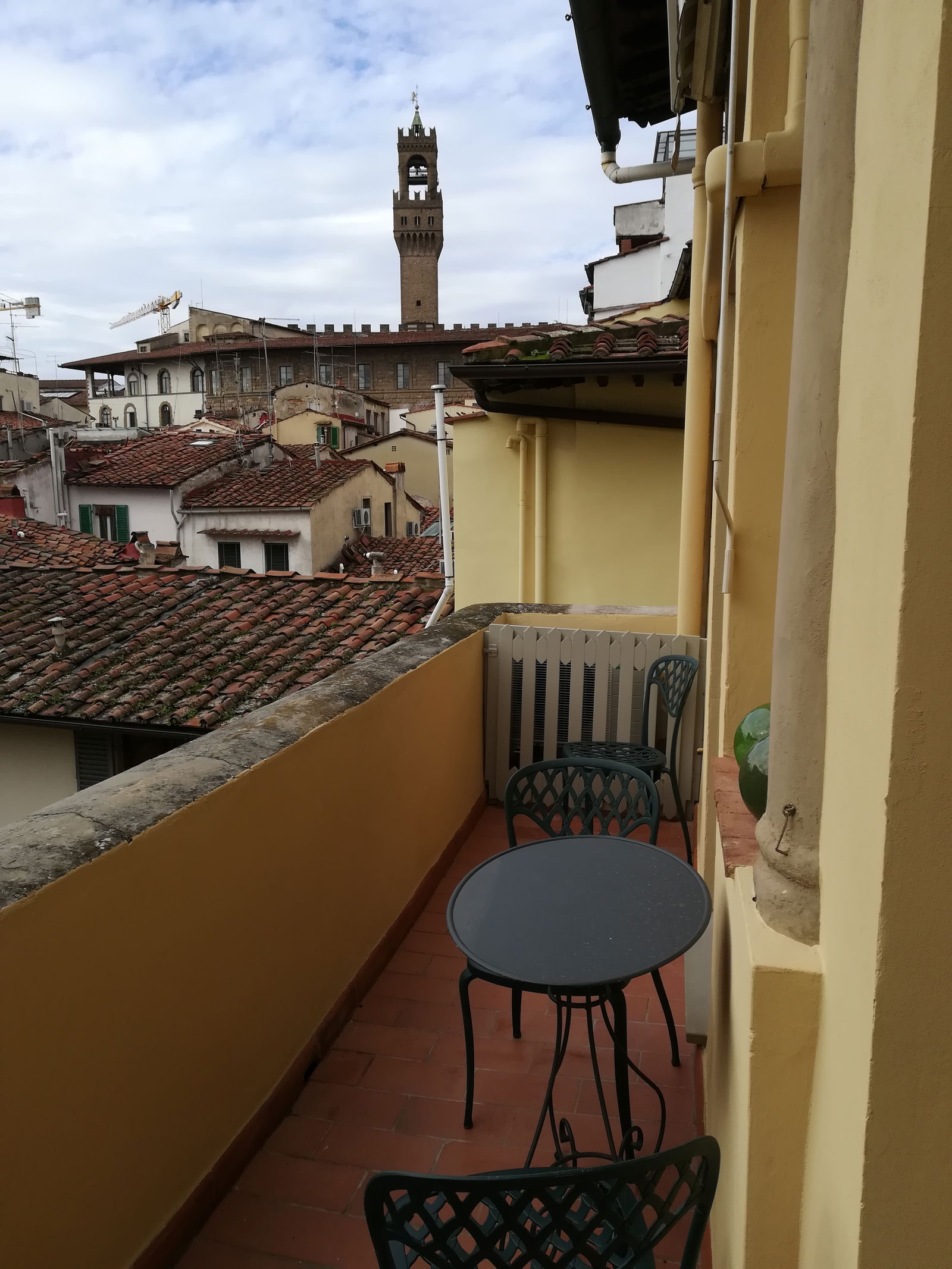 Ubicata sotto uno dei tipici tetti rossi di Firenze, si trova una terrazza privata, molto tranquilla, che guarda verso la vicina torre di Palazzo Vecchio: questo angolo di paradiso in centro a Firenze si merita a pieno titolo il nome che spesso gli viene dato: appartamento con vista. E' costituito, inoltre, da un ampio soggiorno con divano letto matrimoniale, che sfrutta l'abbondanza di luce proveniente dalla terrazza, una camera da letto matrimoniale con cabina armadio ed una con un lettino singolo.
