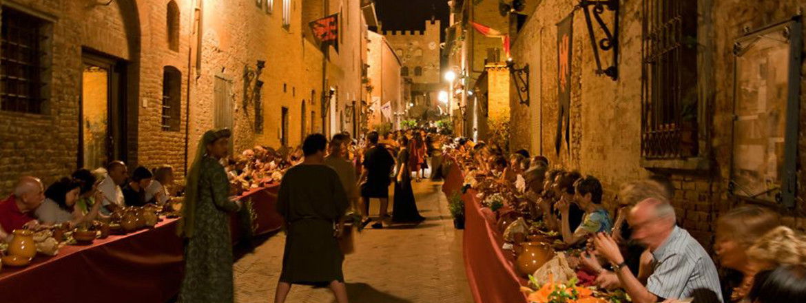 Un altro evento culinario di particolare rilievo ha luogo a Certaldo, ed in particolare lungo la via Boccaccio di Certaldo Alto che sarà completamente attraversata da una lunga tavolata allestita per accogliere i partecipanti della famosa Cena Medievale, giunta ormai alla sua 18° edizione. A Cena da Messer Giovanni è una cena sociale con piatti e ricette tipiche dell’epoca, servite su una tavola imbandita con utensili e posate in legno per rievocare le antiche usanze del periodo, da camerieri in costume. Due saranno le occasioni per degustare pietanze tipiche di una Toscana che fu, nell’ambientazione particolarmente suggestiva ed incantevole del caratteristico borgo di Certaldo Alto, ed allietata da spettacoli ed intrattenimento - giocolieri, saltimbanchi e, soprattutto, i famosi fuochi d’artificio a conclusione delle serate. Sulla pagina web ulteriori informazioni, i costi a persona ed il menù dettagliato. Prenotazione obbligatoria.