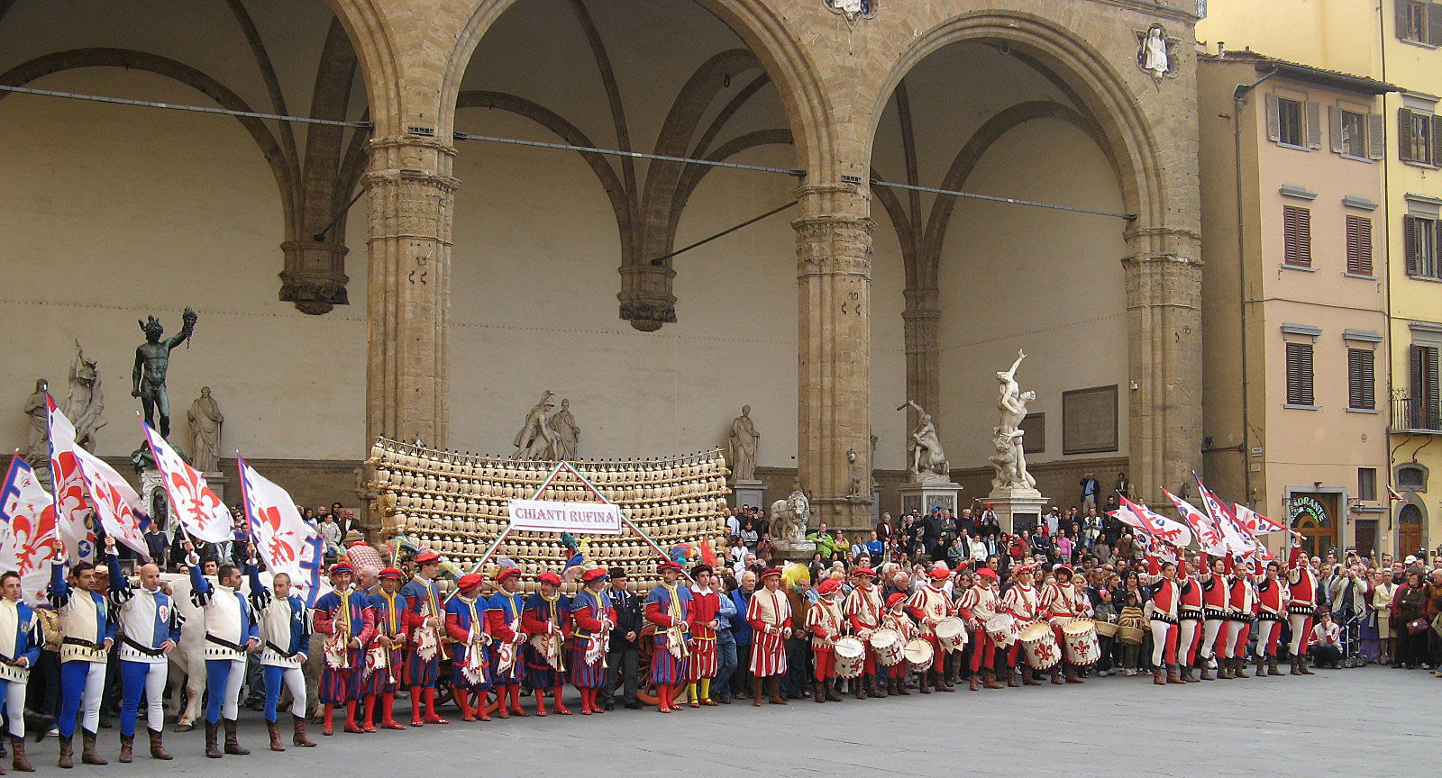 Come anticipato prima, il Carro parte della città di Rufina, e l’evento rievoca un’antica tradizione nella quale il vino novello prodotto nelle campagne fiorentine veniva portato a Firenze per essere benedetto ed offerto ai governanti della città.