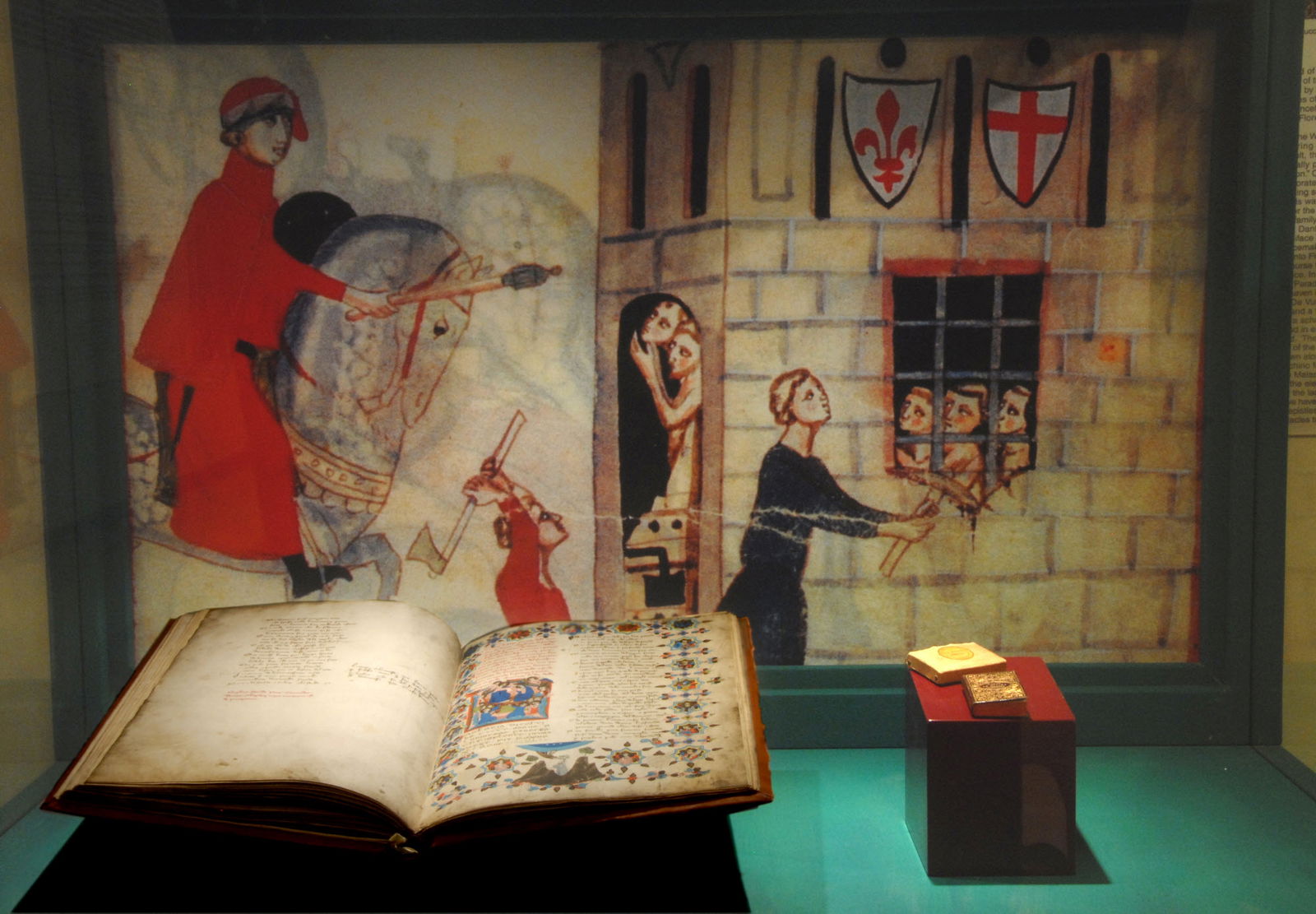 Il primo piano espone una serie di documenti su alcuni aspetti della Firenze del tredicesimo secolo durante la gioventù di Dante ed è dedicato alla Corporazione dei Fisici e degli Speziali, a cui apparteneva Dante.