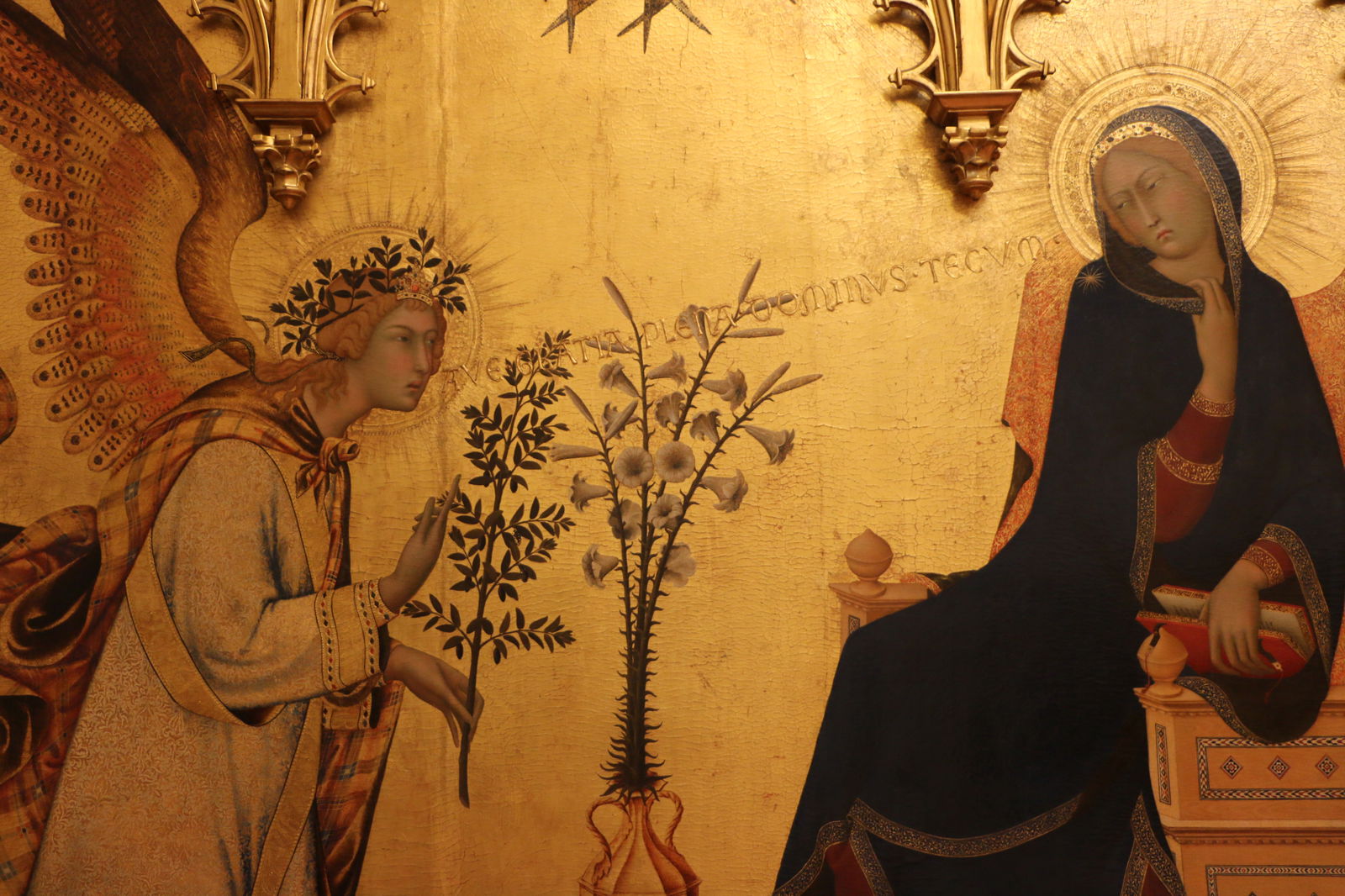 Nelle prime sale degli Uffizi sono ospitate opere di Giotto, Cimabue e Duccio di Buoninsegna e quello che viene considerato lo stile gotico internazionale.