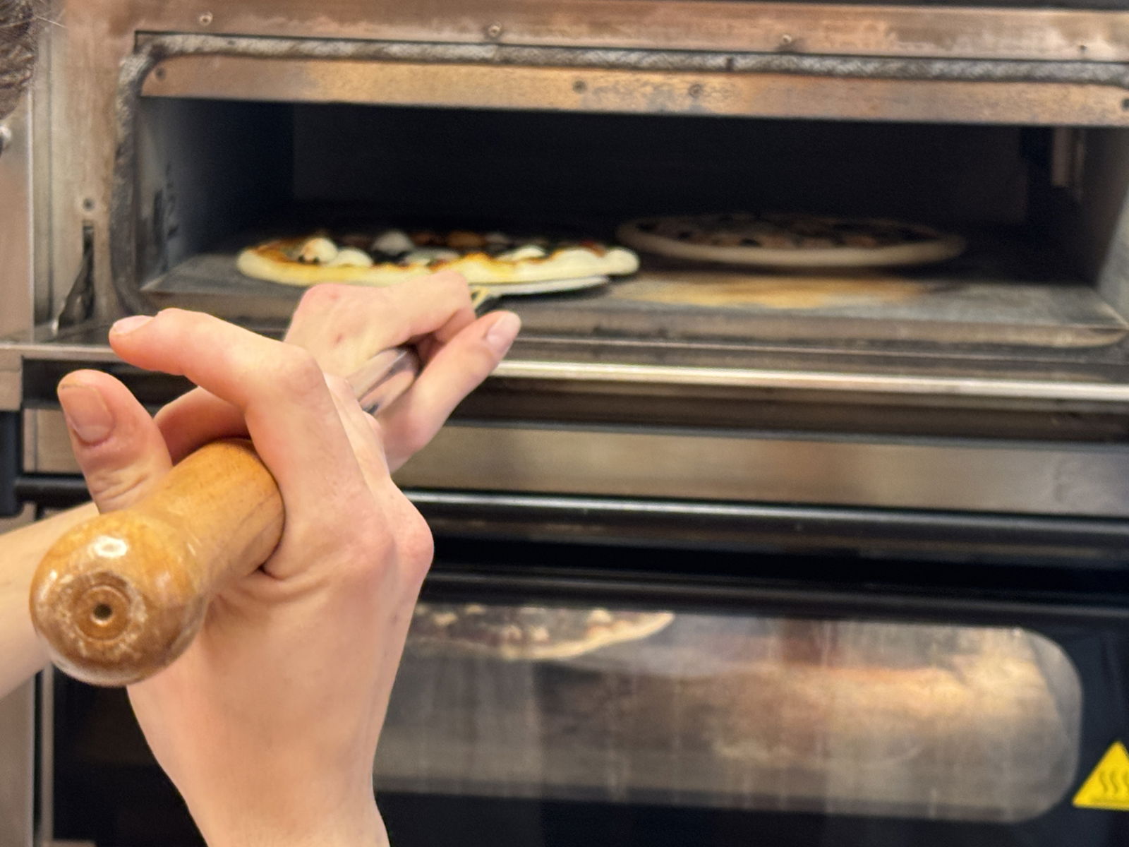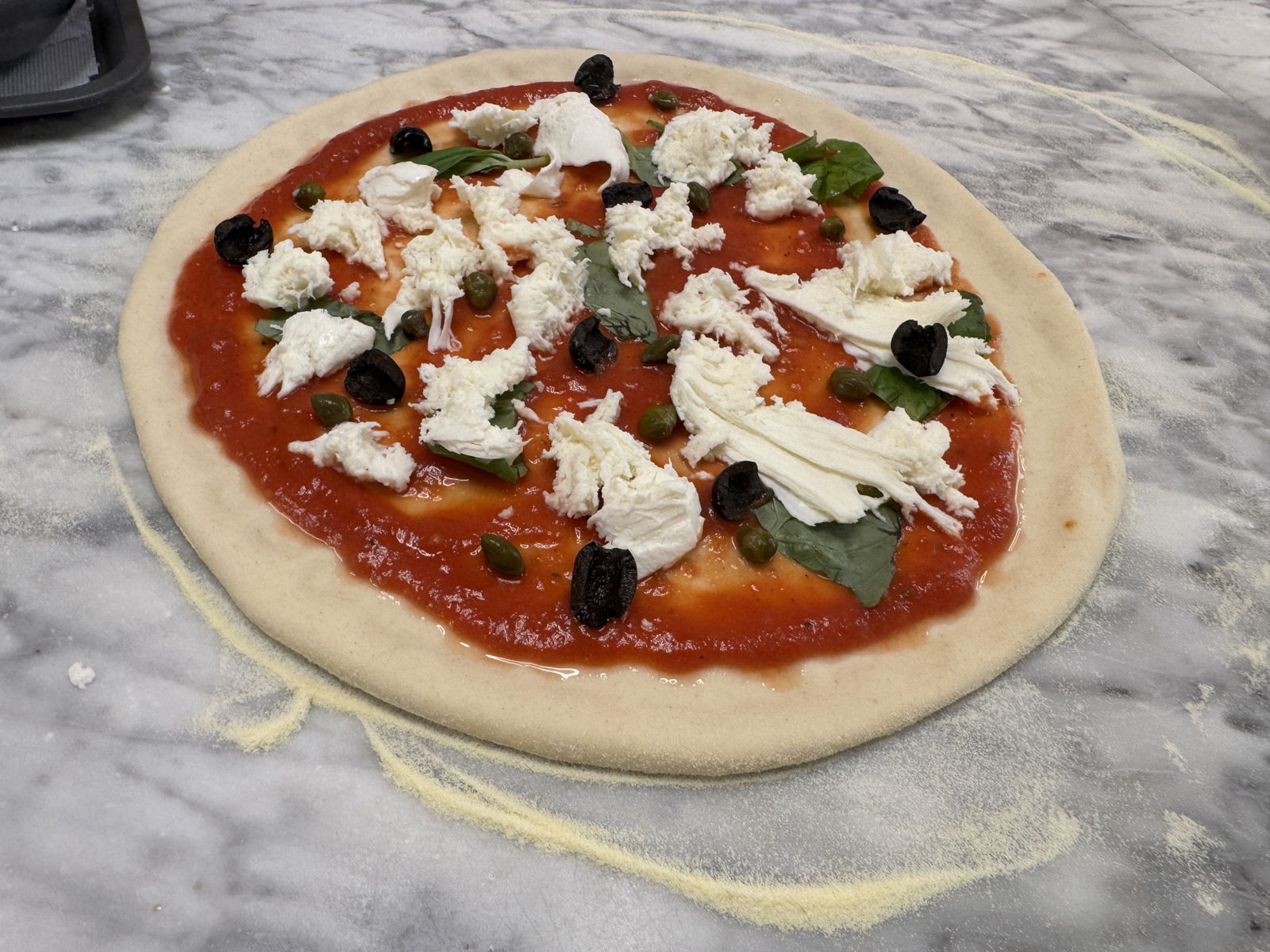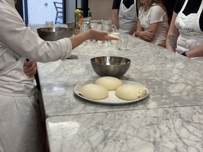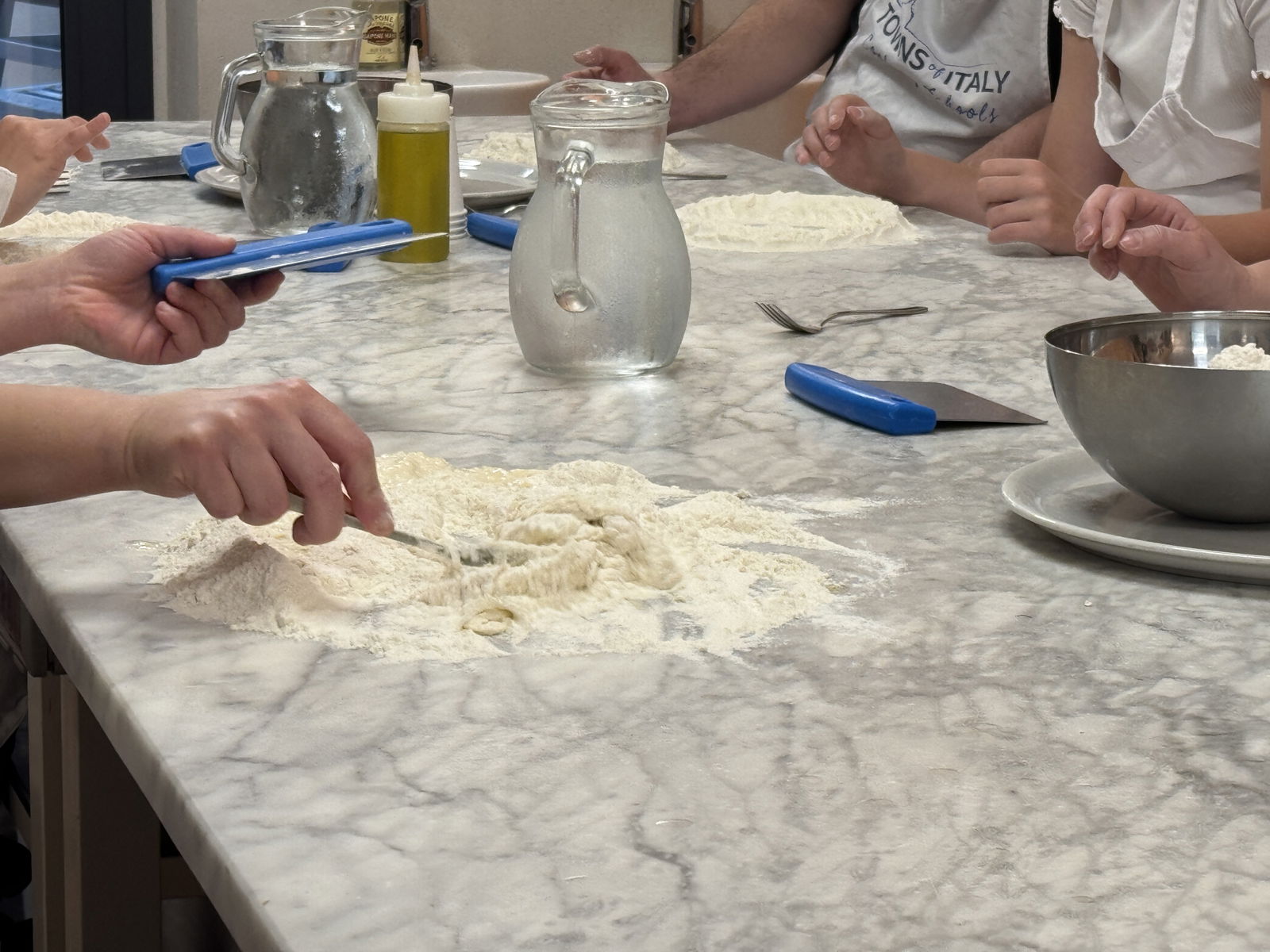 The class began with a brief introduction to pizza making and a demonstration by our chef, who instantly made everyone feel at ease. She walked us through the process of making both pizza and gelato from scratch using high-quality ingredients and simple ones: water, yeast, salt and flour for the pizza and milk, cream and sugar for the gelato. Her clear explanations and sense of humor turned what could have been an intimidating process into something genuinely enjoyable and easy to follow — even the kids that were present that morning were having fun mixing and kneading!